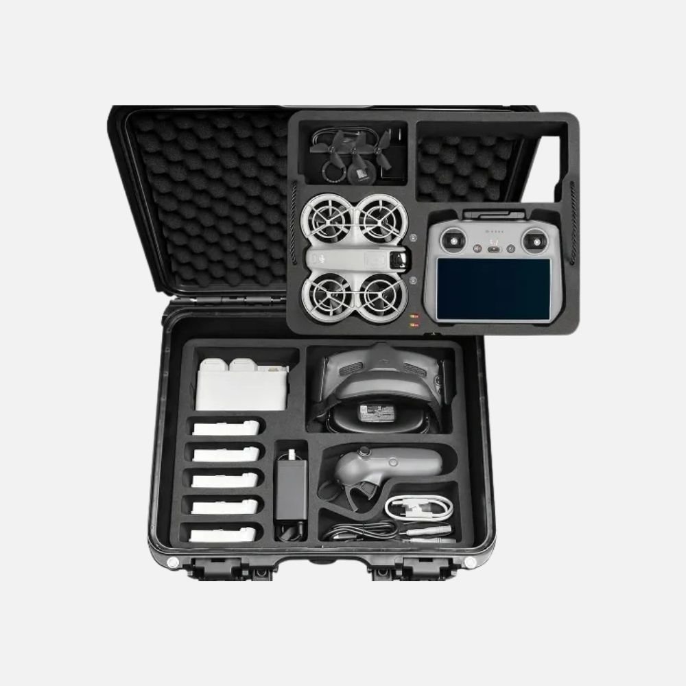 Its custom foam interior ensures a snug fit for your drone, batteries, controller, and accessories, preventing movement during transport. With a secure locking system, an ergonomic handle, and pressure equalization vents, this case is perfect for travel, field operations, and extreme weather conditions.